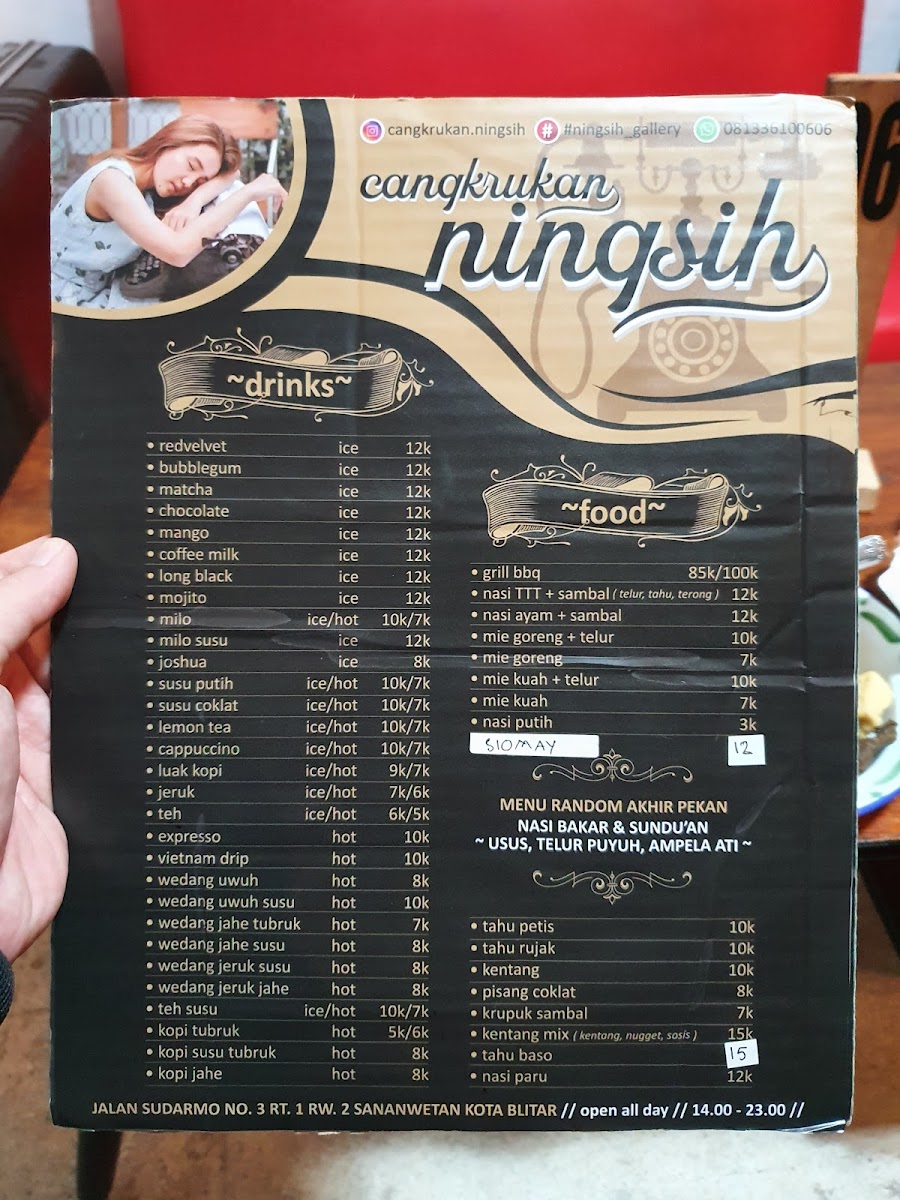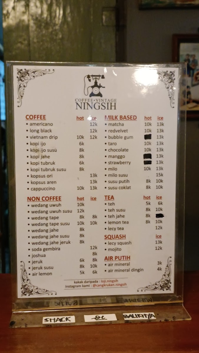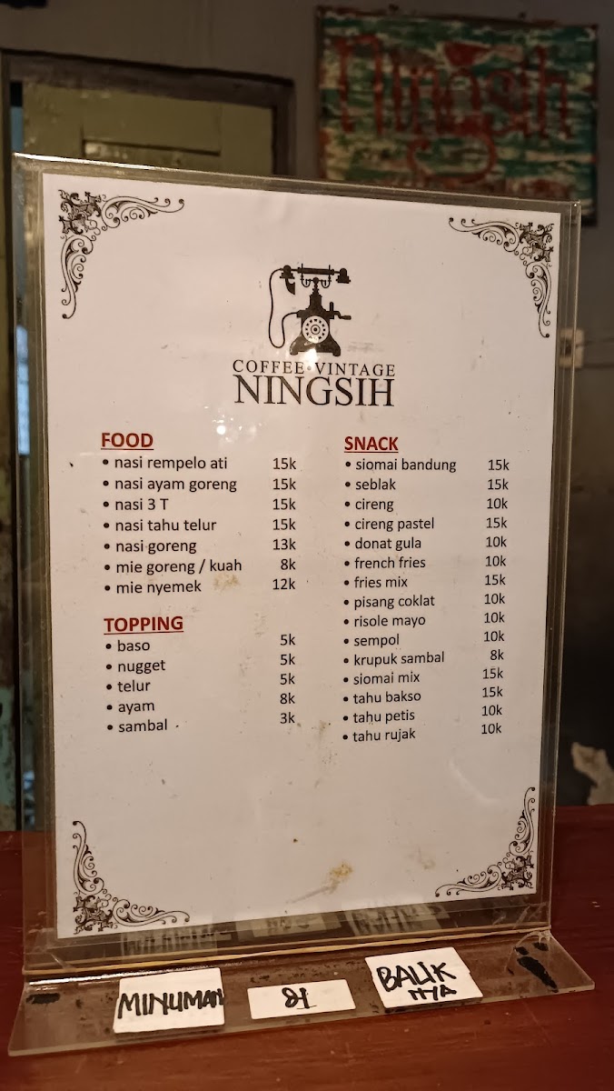 Cangkrukan Ningsih stands out as a charming coffee shop located in Blitar, Indonesia, beautifully combining nostalgia with modern cafe culture. The ambiance is a delightful throwback, featuring vintage decor, warm lighting, and wooden furniture that invite patrons to unwind. The atmosphere is further enhanced by soft classic tunes, making it a perfect backdrop for social gatherings or peaceful moments alone.