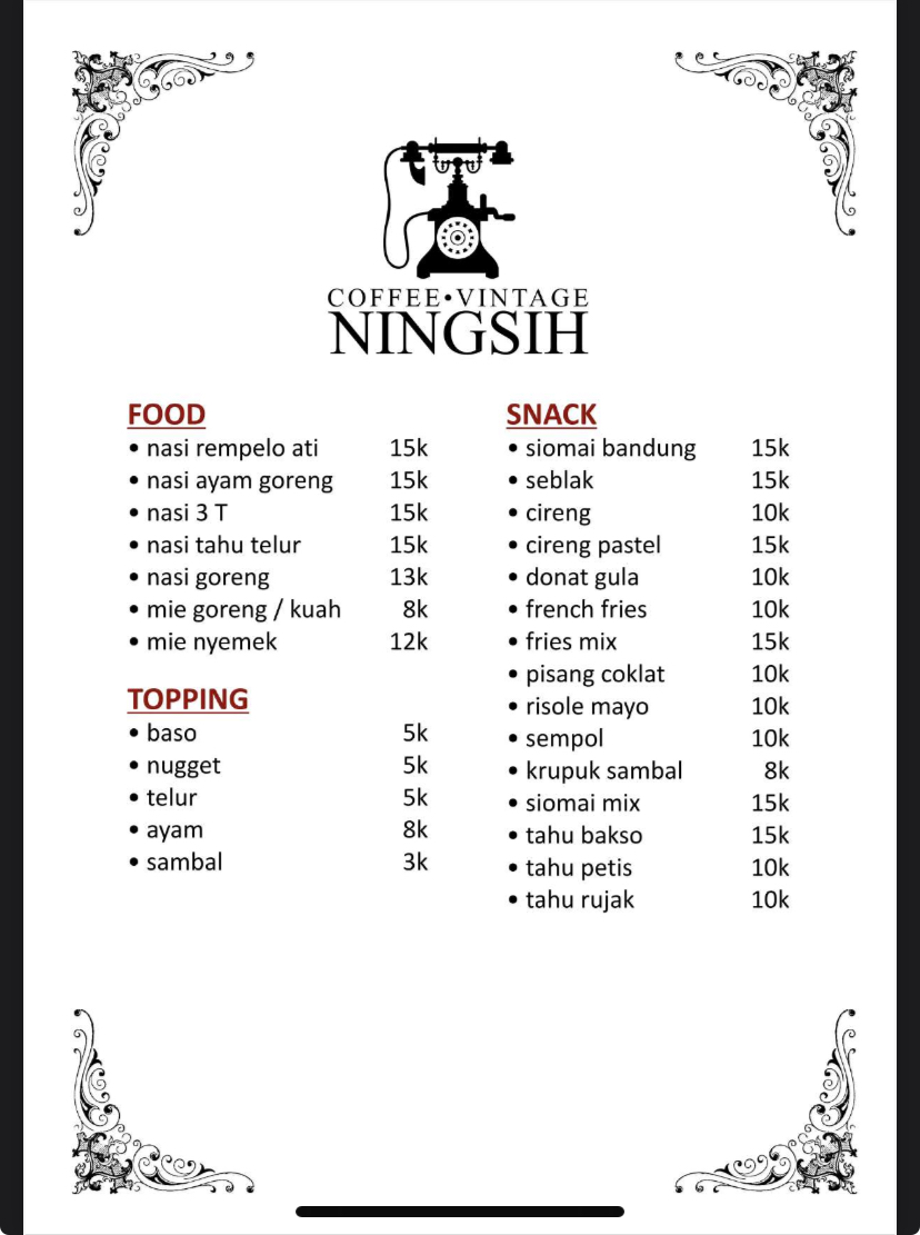 The menu is thoughtfully curated, offering a variety of delicious food and beverages at affordable prices, drawing in both locals and visitors alike. Customers rave about the eye-catching presentations and comforting flavors that align perfectly with the café’s retro style. With its Instagram-worthy aesthetics and friendly service, Cangkrukan Ningsih is more than just a coffee shop; it’s a nostalgic escape, encouraging visitors to savor their meals and create lasting memories with friends. For anyone seeking a blend of classic charm and modern comfort, this spot is not to be missed!